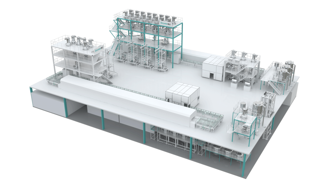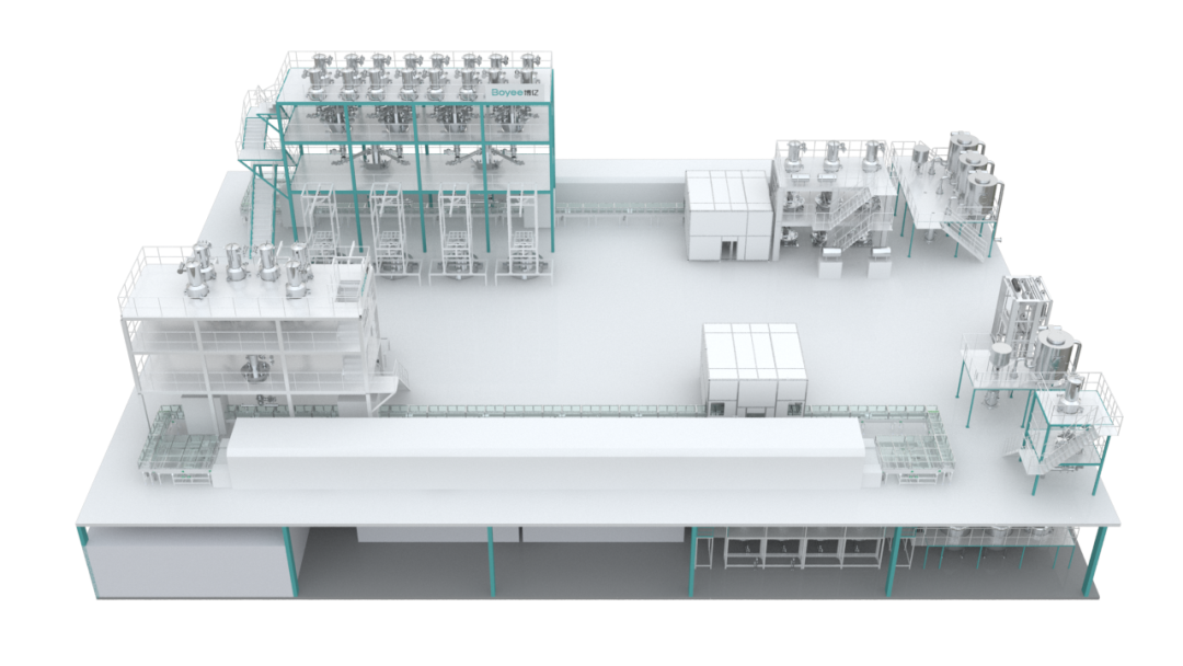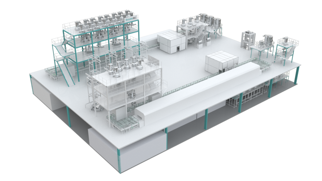 图为:博亿固态电解质智能化产线解决方案 这一解决方案为整个行业树立了标杆,不仅展示了固态电解质生产技术的最新成果,还引领了行业的技术革新方向,促进了固态电池领域的整体进步。