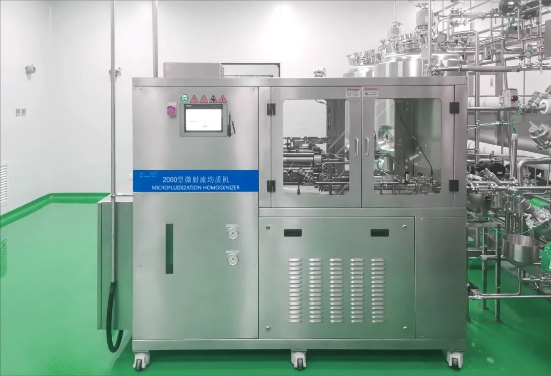 图为:博亿医药智能化产线,解决方案涵盖小袋解包站——上料系统——研磨——过滤——喷雾干燥——自动罐装 通过高速转动,使药物粒子之间、药物粒子与研磨介质及器壁之间发生强烈的撞击和剪切力。 从而有效地将药物粒子细化至纳米级别,制得高质量的纳米晶体粒子。 然后采用微射流均质机对砂磨后的药物进行进一步的均质处理,使药物纳米晶的粒径更加均匀,减少大颗粒的存在,提高药物的稳定性和生物利用度。 图为:诺泽微射流均质机 同时,联合使用这两种设备还可以根据不同的药物需求,精确控制纳米晶的粒径大小,以实现最佳的治疗效果。 例如,在制备难溶性药物的纳米晶制剂时,这种联合应用可以有效地提高药物的溶解性能和生物利用度。 此技术的优势在于制备过程简单、操作性强、工艺稳定,且适用于多种难溶性药物的纳米晶体制备。 通过精确控制研磨参数,如转速、时间、温度等,可以实现对药物粒子大小的精准调控,满足不同药物的需求。