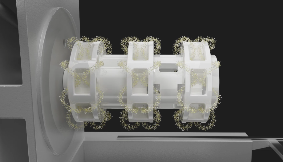 物料进入研磨系统,利用研磨介质与浆料之间的相互作用,以及转子产生的高强度剪切力与撞击力。
